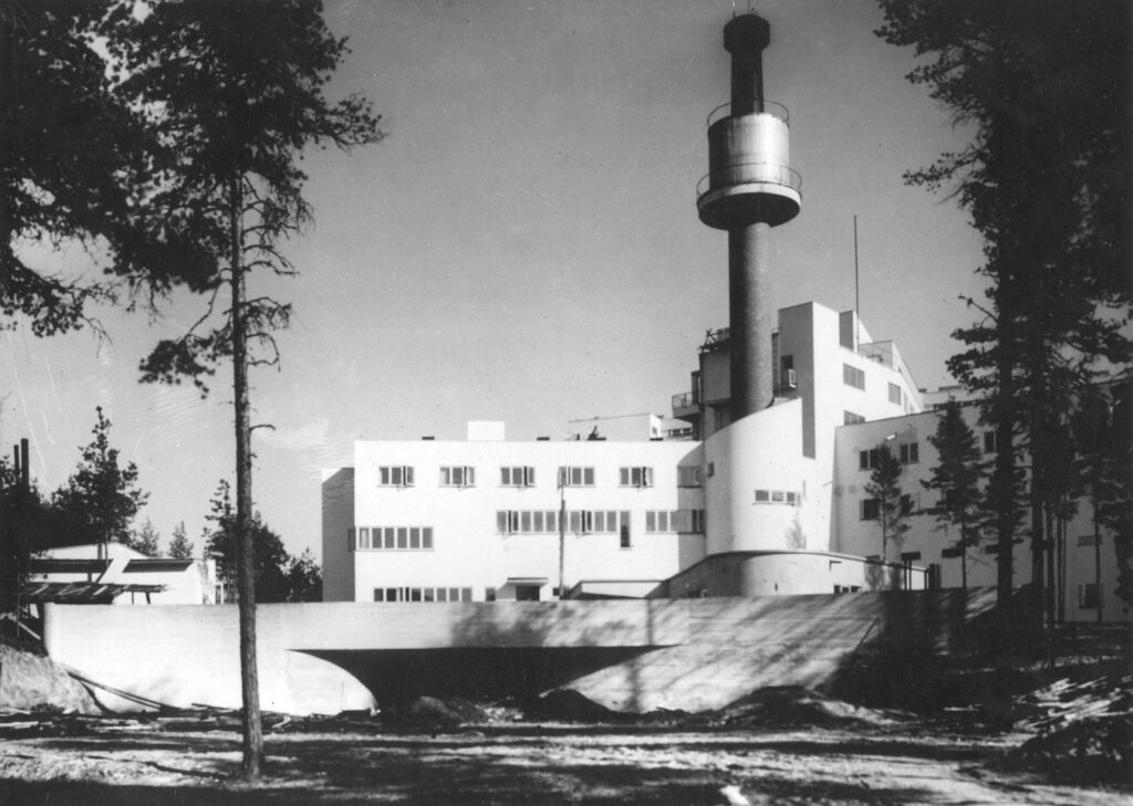 Tuberkuloosipotilaita hoidettiin myös leikkauksilla. Vuonna 1958 valmistuneen leikkaussalisiiven tunnistaa pyöreistä kattoikkunoista. Tämäkin rakennussiipi on Aallon toimiston suunnittelema.
